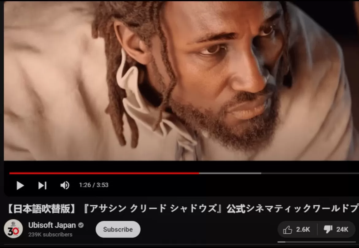 根据统计数据显示,《刺客信条:影》日本版预告片在油管上的点赞仅有2600个,但不喜欢的数量超过了2....