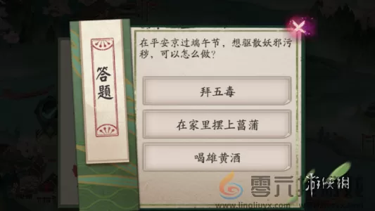 在平安京过端午节想驱散妖邪污秽正确答案:在家里摆上菖蒲详细介绍问题:在平安京过端午节,想驱散妖邪污秽...